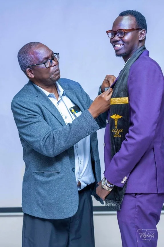 After laying his sister to rest, the family finally made it to Kakuma Refugee Camp in Kenya. A.J. demonstrated strong academic performance from a young age, regularly finishing amongst top ranks within his classes. When A.J.’s family was repatriated to South Sudan, he decided to stay in Kenya with an extended family member as he was on the verge of progressing to secondary school. A.J. made this tough decision to let his family depart without him, knowing that he needed to stay in school in Kenya to achieve his ultimate dream of becoming a doctor.